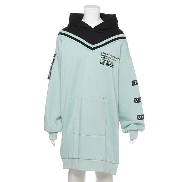 セール 袖ブロッキング裏毛パーカーワンピース ラブトキシック Lovetoxic D Fashion